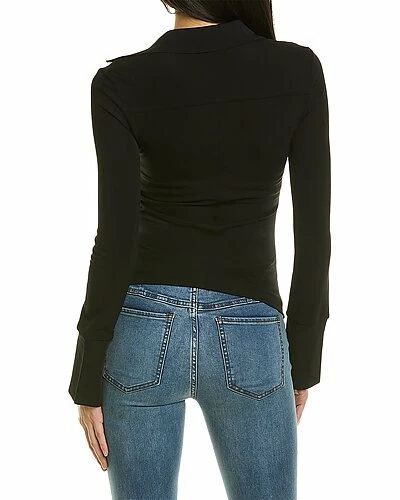 - Asymmetrical Shirt in black with ruched front and button cuffs