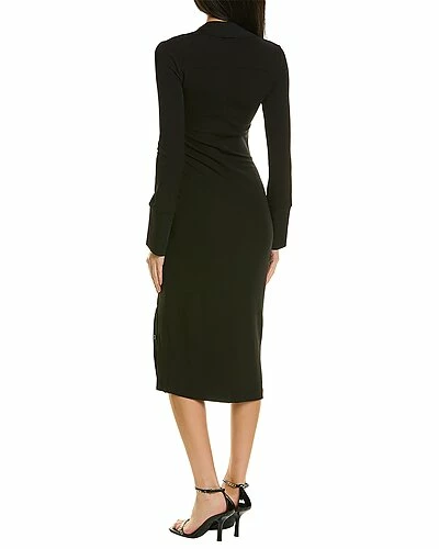 - Asymmetrical Shirtdress in black with ruched front and button cuffs