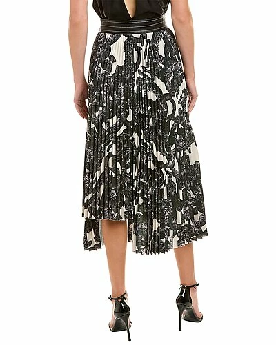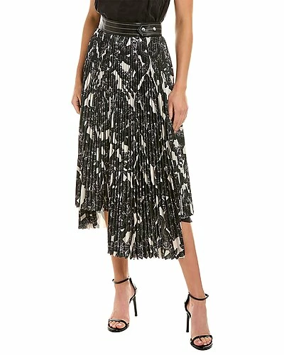 - Leather Waist Pleated Skirt in clay multicolor with high-low hem