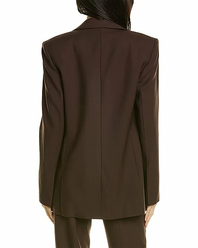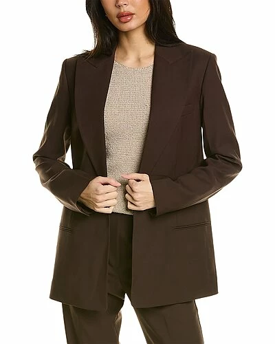 - Peak Lapel Wool-Blend Blazer in fig with left chest pocket, two front pockets, and center vent at back hem