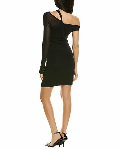 - Twist Dress in black with gauzy yoke, cold right shoulder, and twisted detail